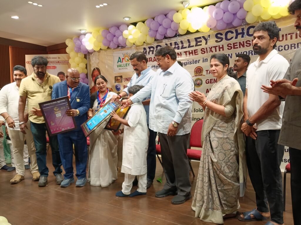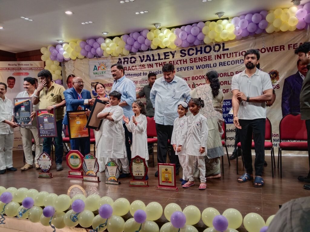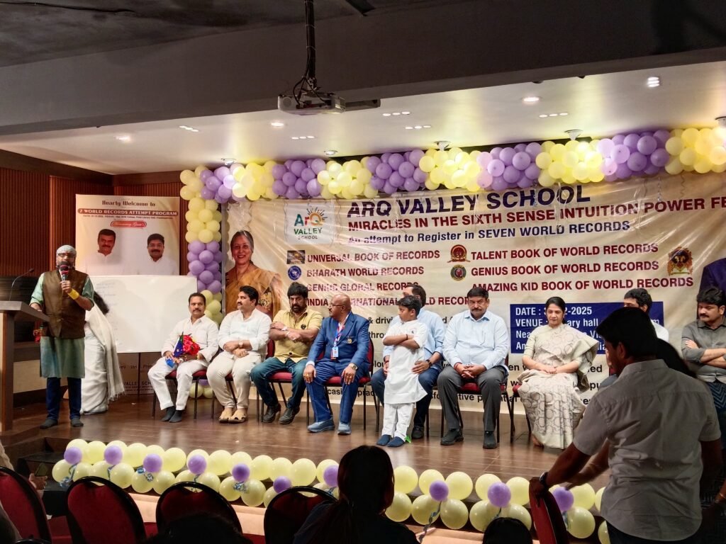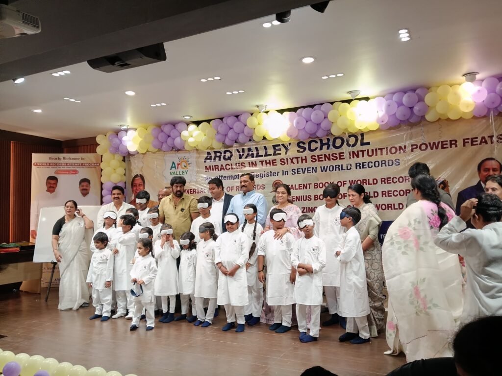 has achieved recognition from UNIVERSAL BOOK OF RECORDS for the extreme talent in Sixth sence remarkable feats such as performing activities while blindfolded feats and driving with blindfold,sensing objects through the feet using sole-sense perception, identifying ball colors without physical touch even when concealed, and intuitively replicating drawings created by others without visual input—showcasing the practical and transformative potential of the sixth sense, organised and Trained by Mrs.Dr.Majji Sai Laxmi-Chairman ,ArQ Valley School Andhra Pradessh,India.